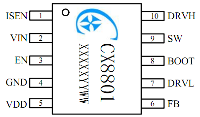 CX8801 is a 9V to 100V high voltage, synchronous step-down controller. CX8801 provides a continuous load current of 10A, with an efficiency of up to 96%. CX8801 adopts fixed frequency peak current control with built-in compensation function, and does not require external components. The cycle by cycle current limit of high-end MOSFETs can protect the converter in case of overload. If the overcurrent condition lasts for more than the current time, it will trigger burp mode protection. CX8801 has a protection function that can protect the load from faults such as undervoltage, overcurrent, and overheating.