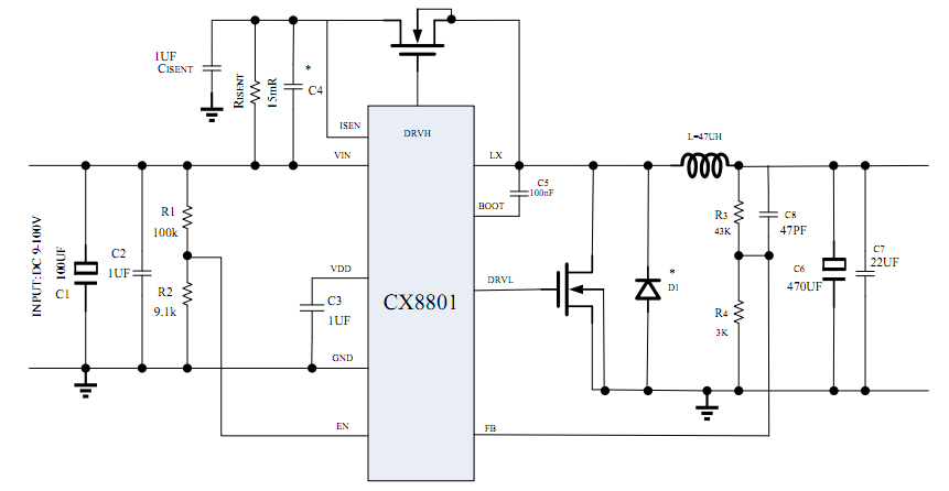 CX8801 is a 9V to 100V high voltage, synchronous step-down controller.