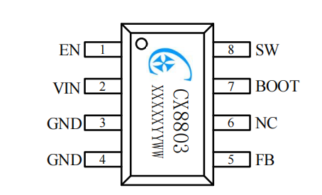 The CX8803 can provide a continuous load current of 2A, with an efficiency of up to 95%.