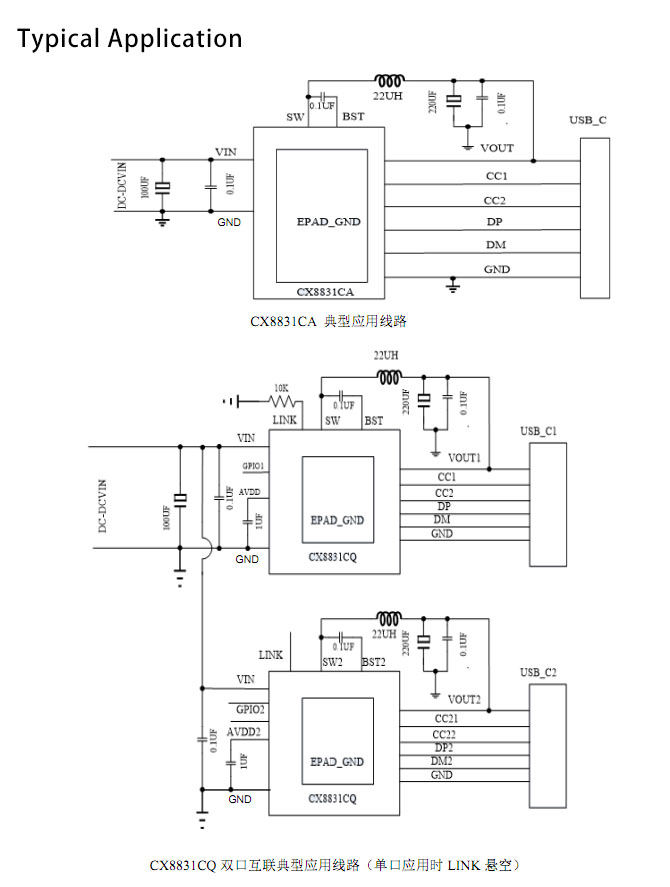 CX8831CQ can realize high-power operation of two USB-C ports independently through CHIP-LINK, and