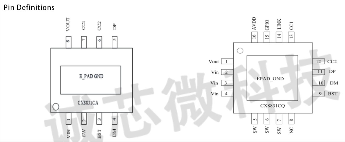 ESOP-8L/QFN4x4CX8831CX is a buck SoC chip integrated with multi fast charging protocols. It is packaged in ESOP-8L,